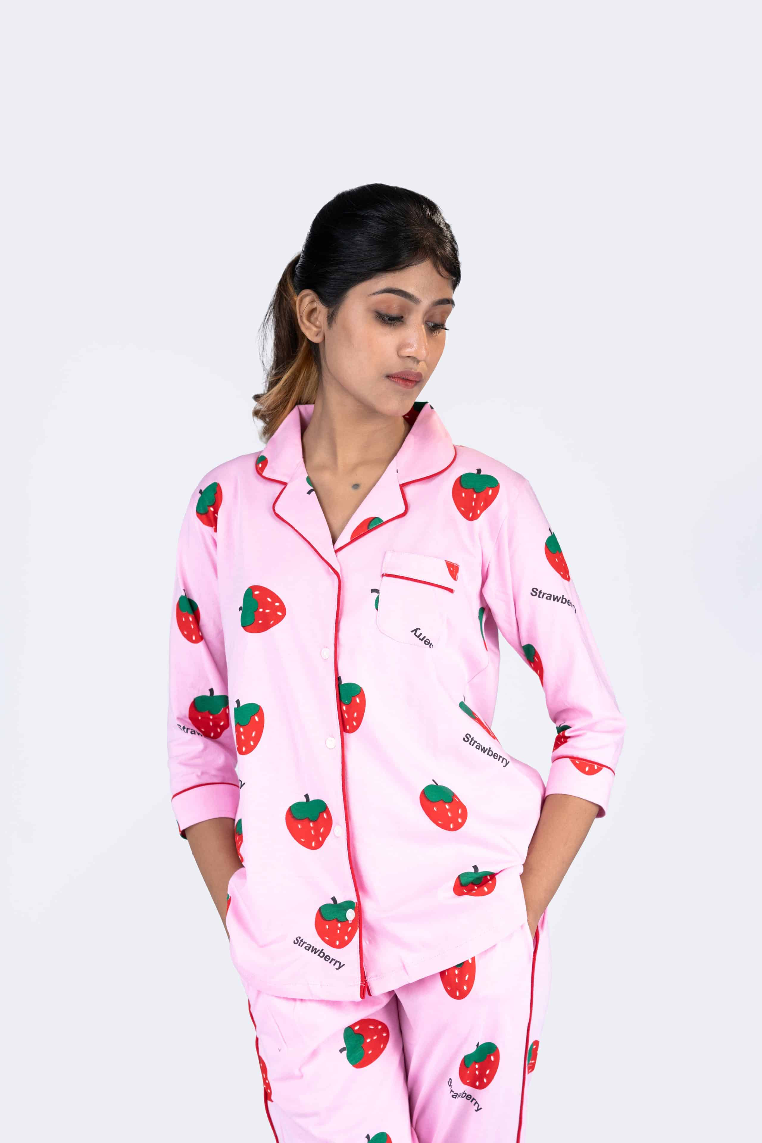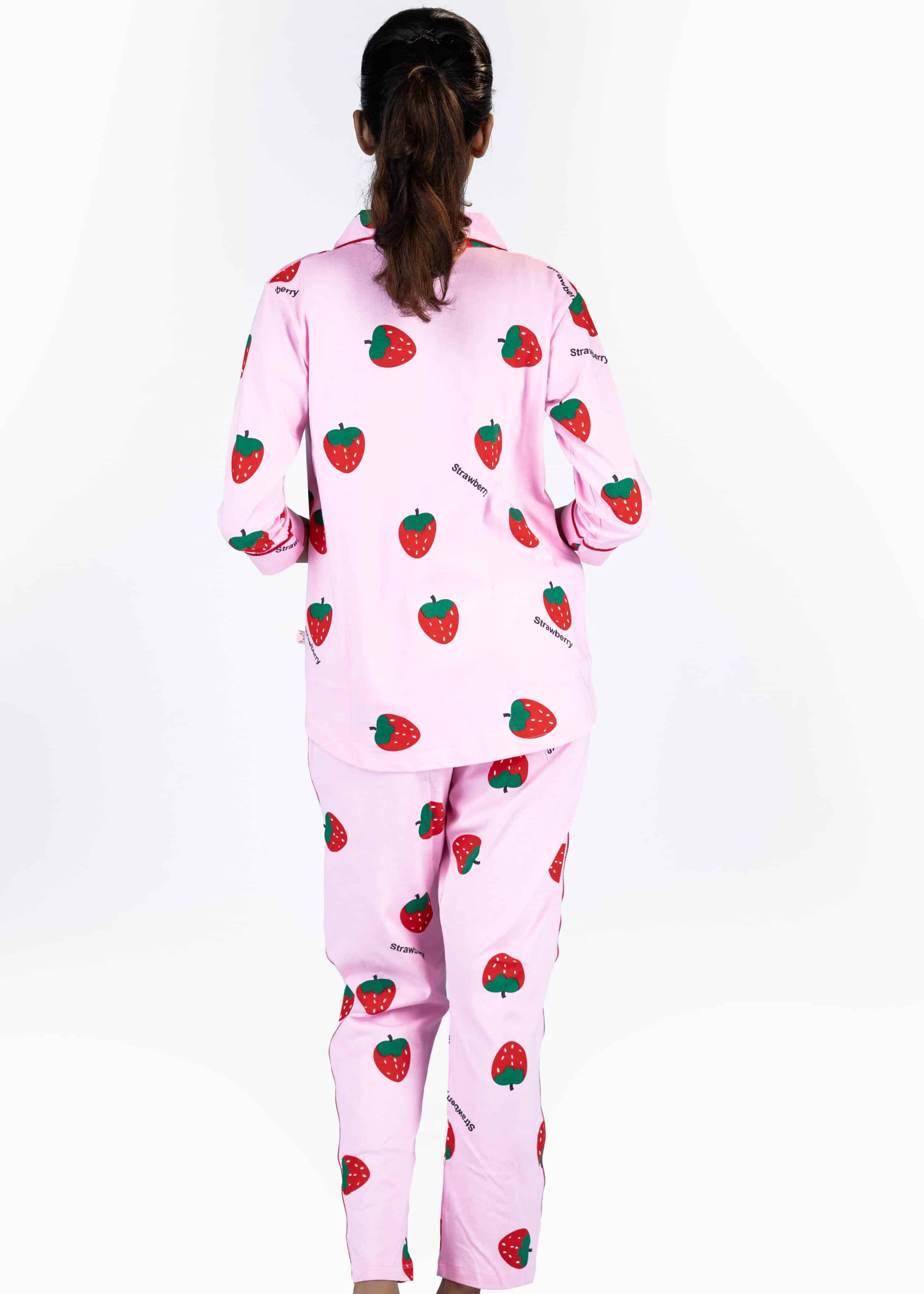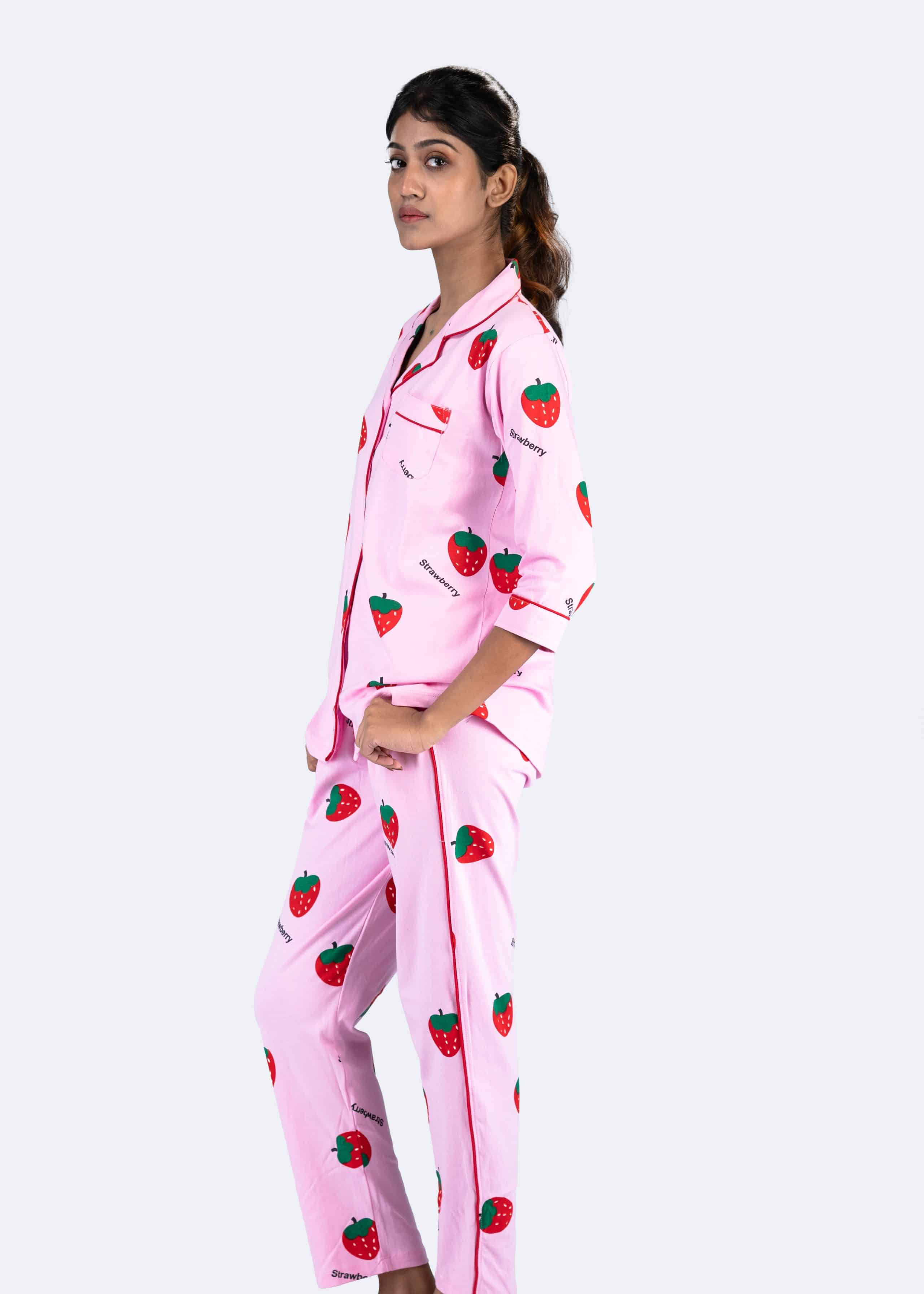 Berry Dream Pink Pyjama Set | Notched Collor | 100% Pure Cotton | Bio-Washed | Manufacture to Consumer Direct sale